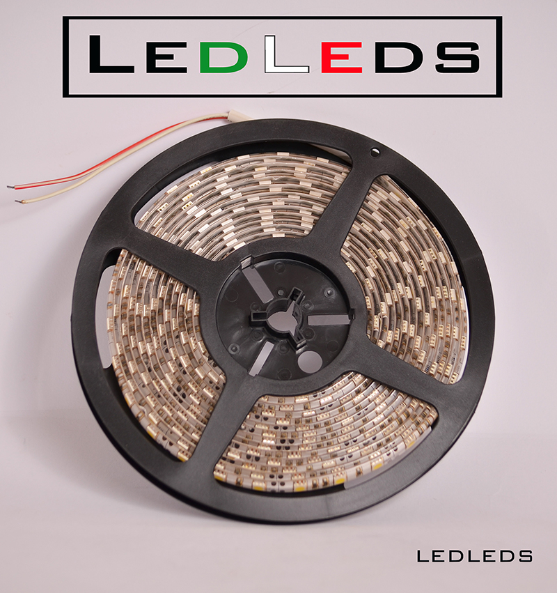 STRISCIA A LED SMD 5050 (GRANDI - ALTA LUMINOSITA') 300 LED 5 METRI STRIP WARN WHITE - BOBINA LUCE BIANCO CALDO (impermeabile IP65) 14,4 WATT AL METRI