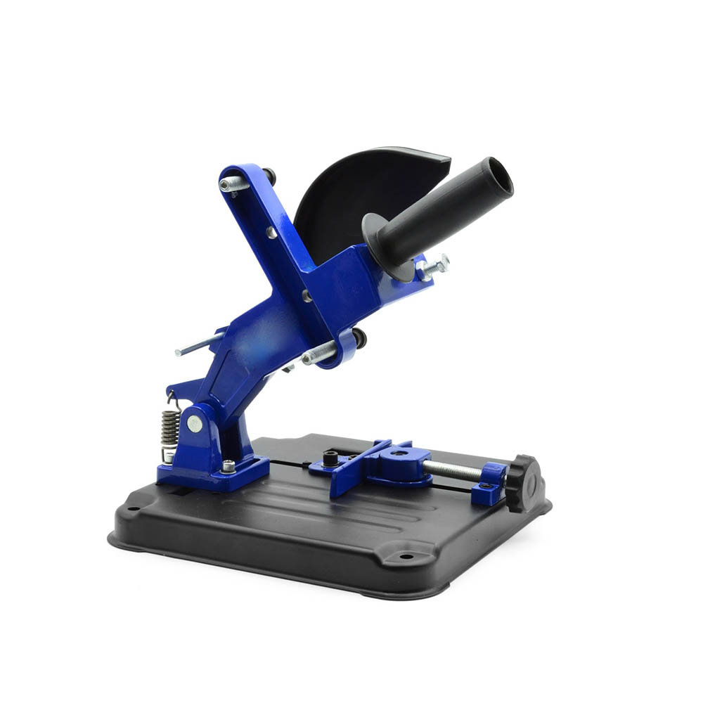 Supporto per smerigliatrici angolari con diametro del disco di 115 e 125 mm. Progettato per il taglio preciso di elementi metallici. La piastra pressofusa è dotata di fori che possono essere facilmente montati sul piano di lavoro. La morsa rotante consente di regolare l'angolo di taglio nell'intervallo da 0 a 45 gradi. La copertura aggiuntiva protegge l'utente dalle scintille calde.