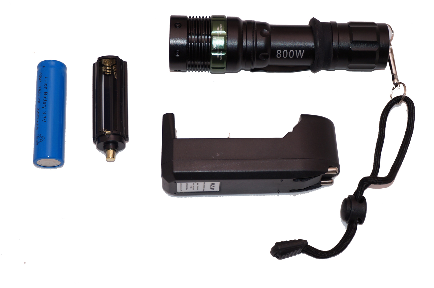 · Il prodotto è motorizzato da 3 batterie AAA o 1 batteria ricaricabile 18650, e può essere ricaricata fino a 1000 volte ; inoltre la batteria riesce a funzionare per oltre 360 minuti continui; il kit è completo di caricabatteria portatile 5000mA.