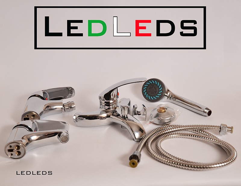 TRIO RUBINETTO MISCELATORI VASCA BIDET LAVABO MISCELATORE VASCA COMPLETO DI DOCCINO