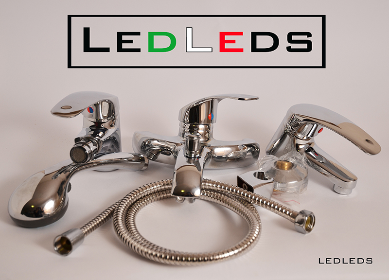 TRIO RUBINETTO MISCELATORI VASCA BIDET LAVABO MISCELATORE VASCA COMPLETO DI DOCCINO